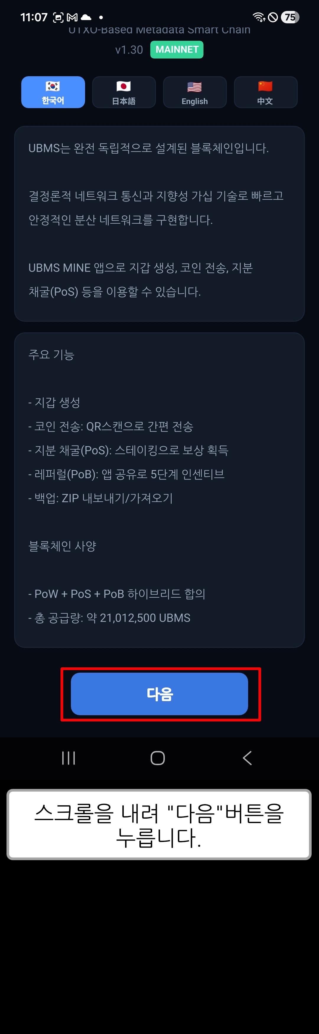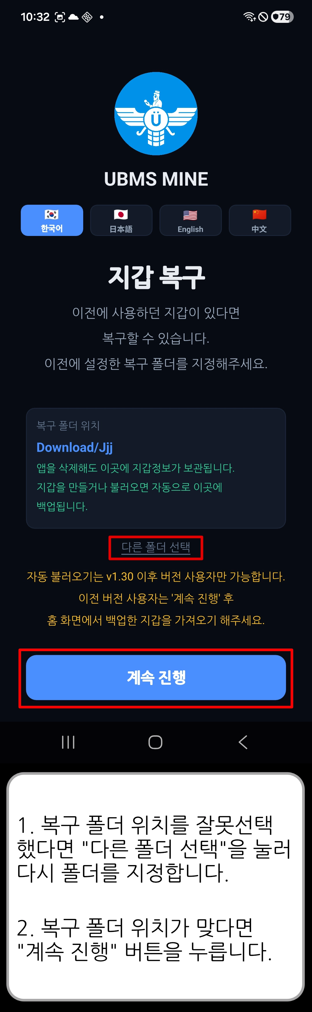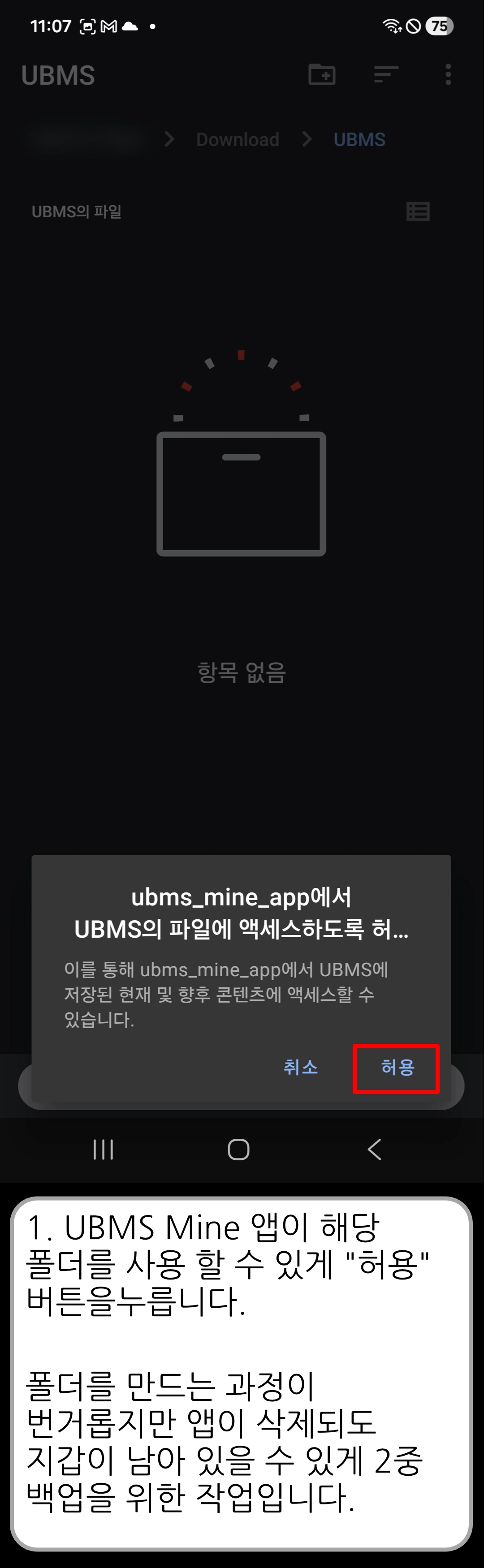 [ UBMS Mine v1.30 ] 앱 초기 설정 (Android)