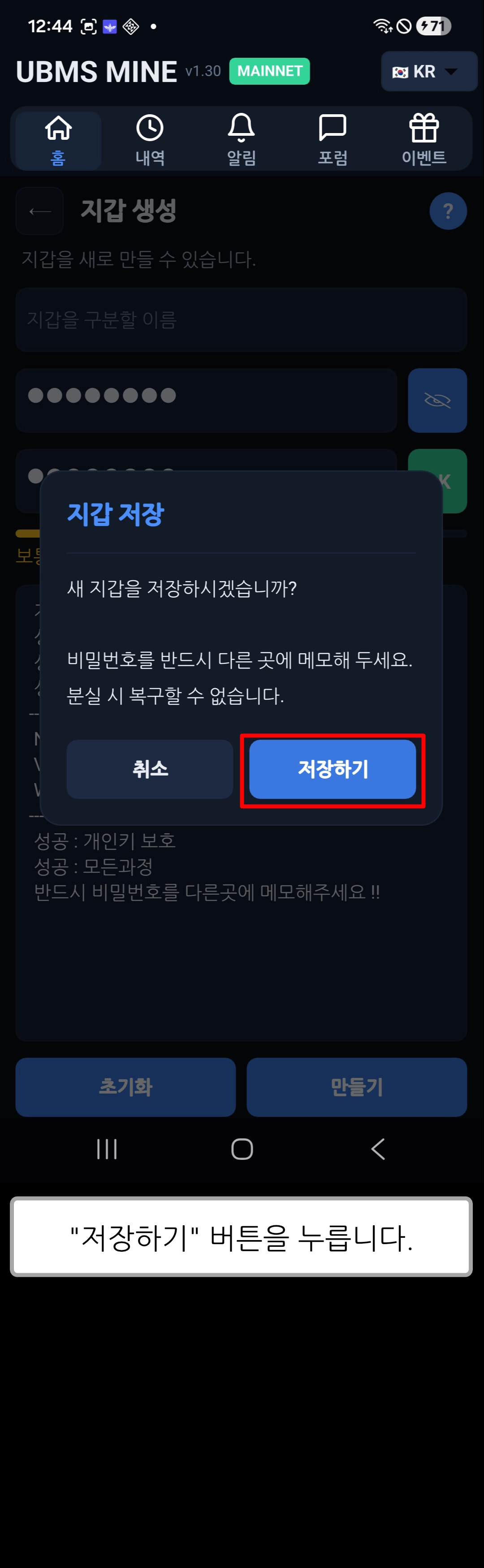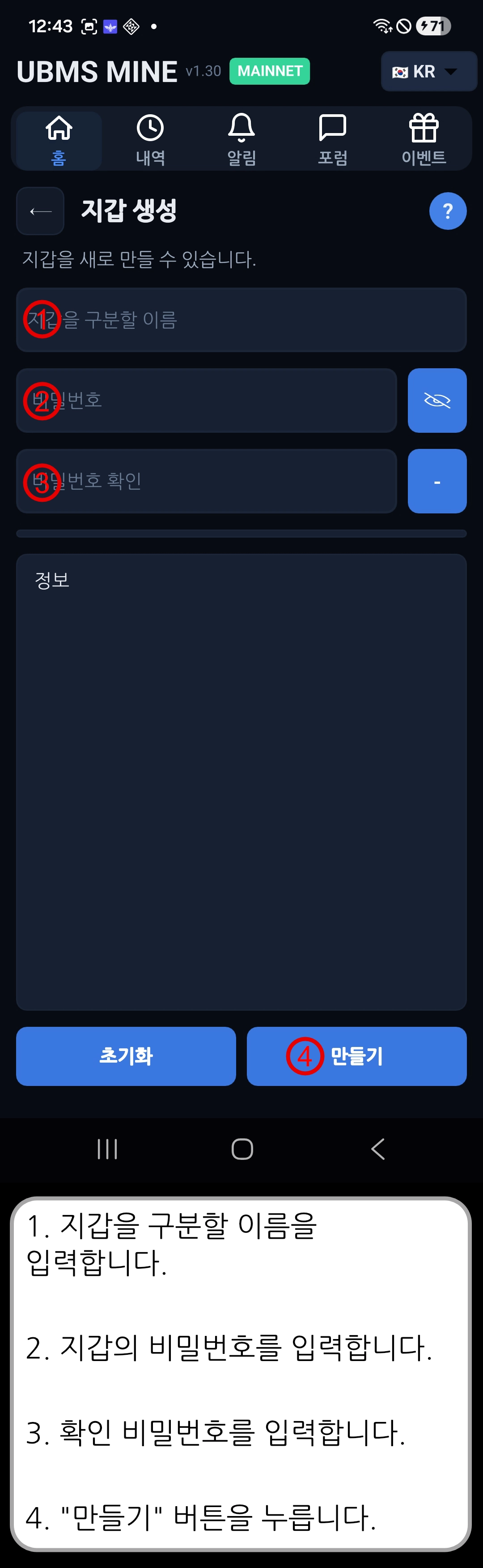 [ UBMS Mine v1.30 ] 지갑 생성