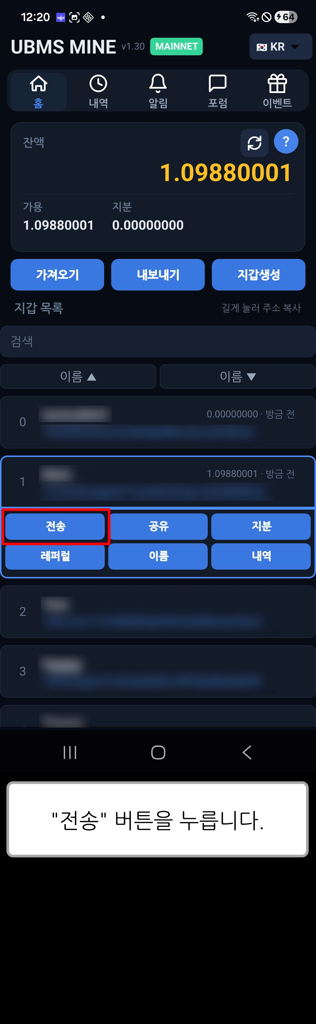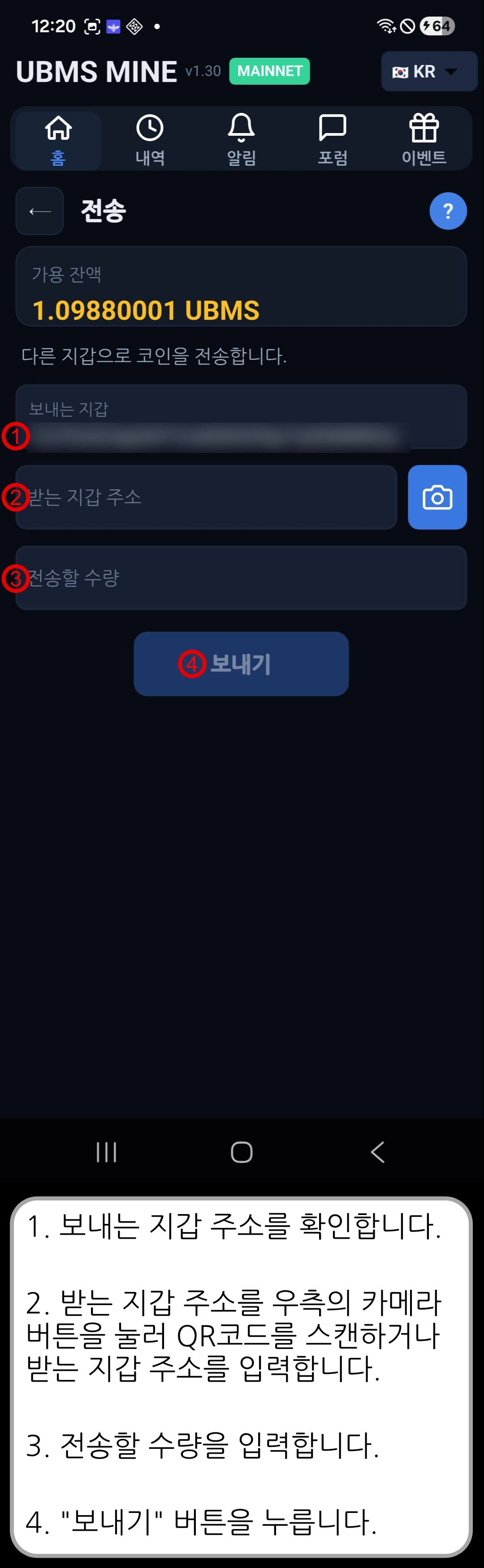 [ UBMS Mine v1.30 ] 코인 전송