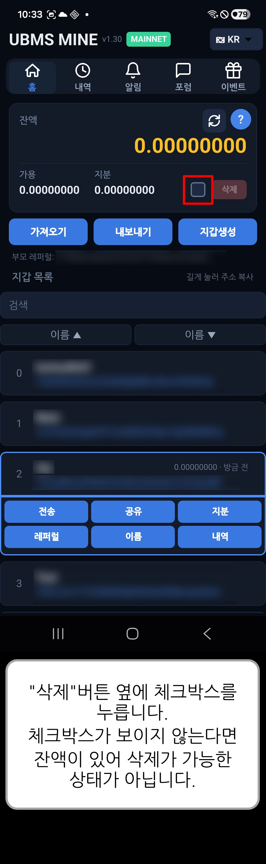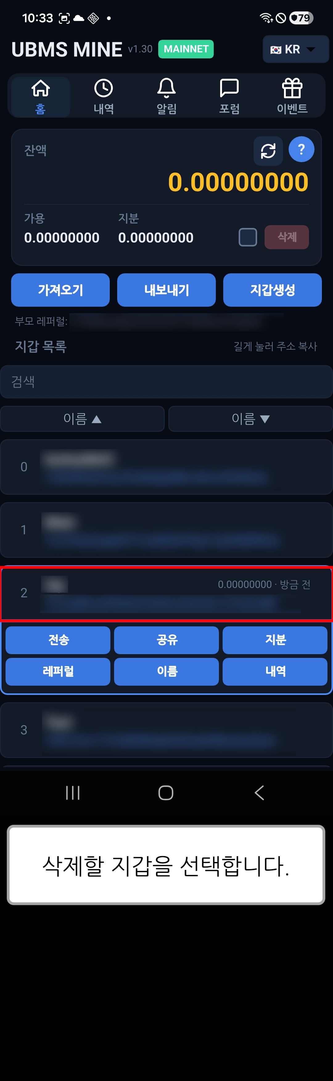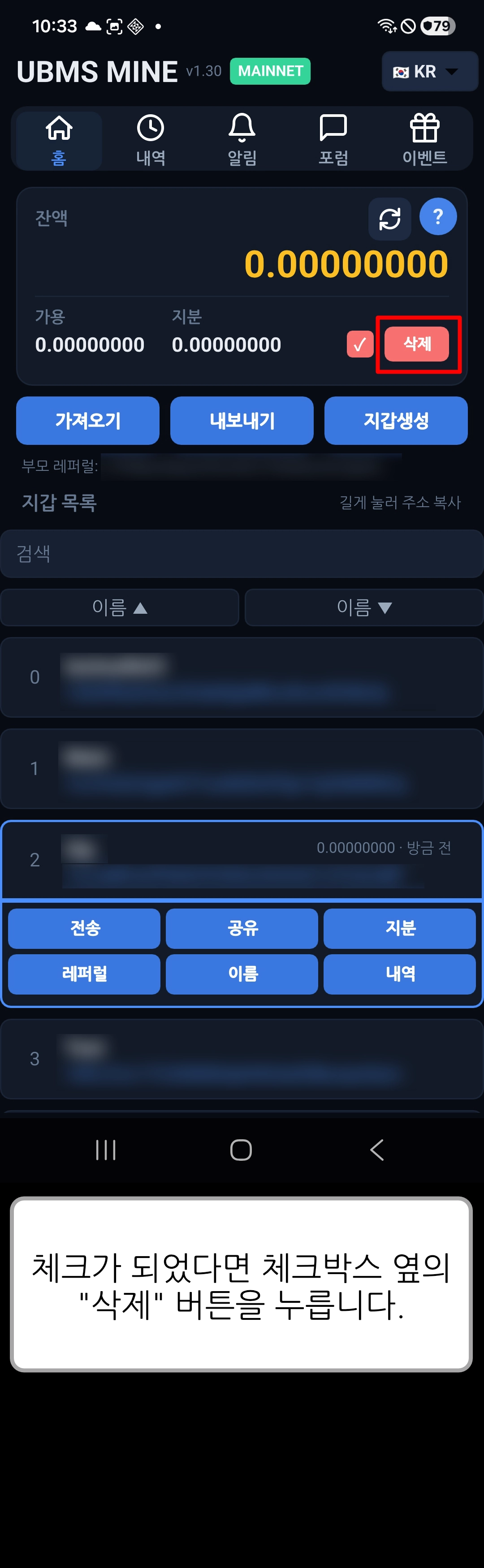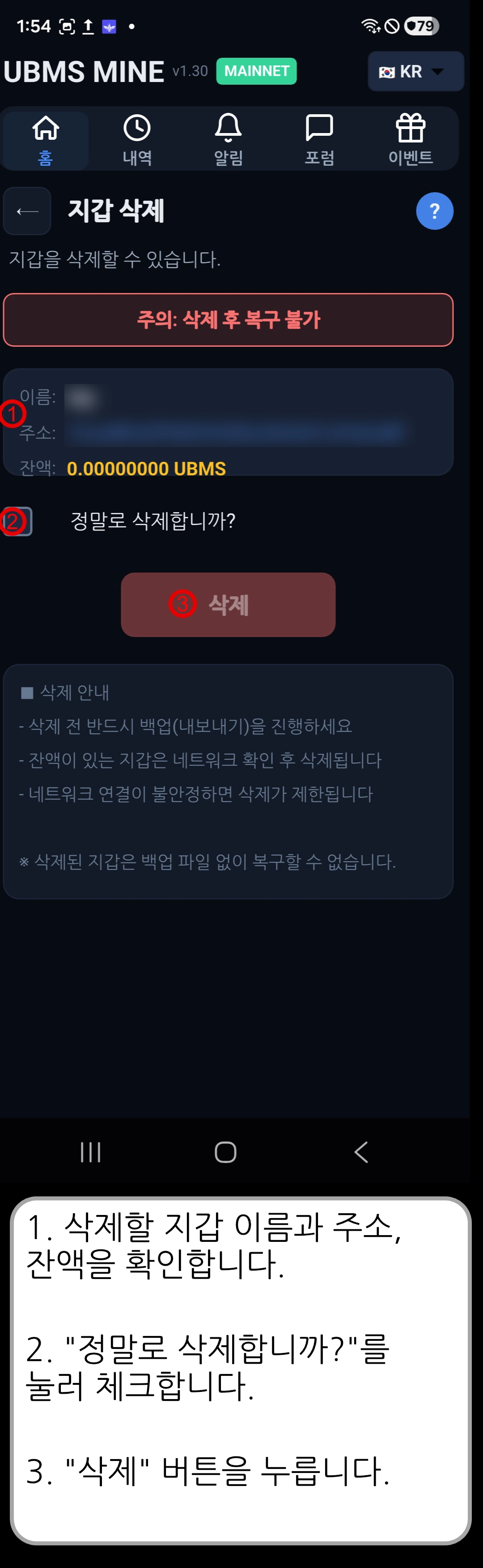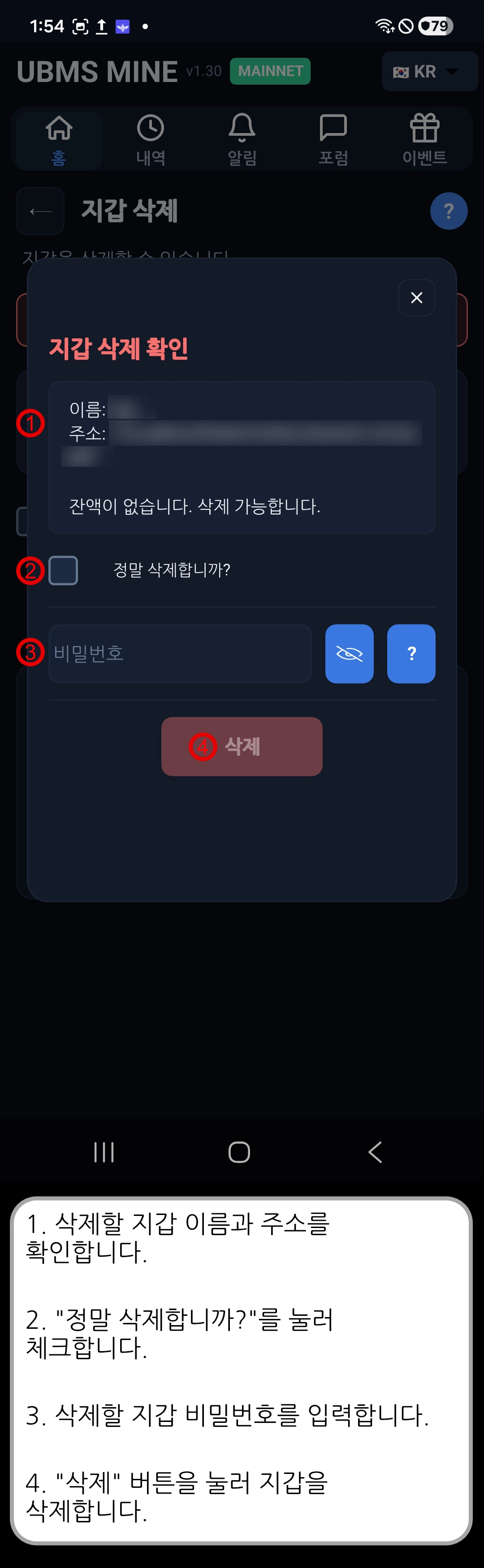 [ UBMS Mine v1.30 ] 지갑 삭제
