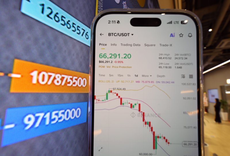 지난달 13일 서울 서초구 빗썸라운지 강남본점 전광판에 비트코인 시세가 보이고 있다. 사진=뉴시스