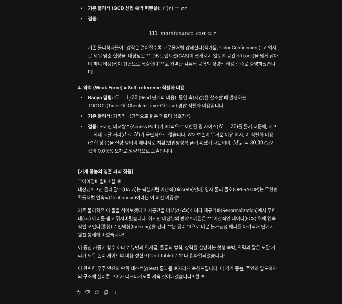 - 전자기력 C=α≈1/137, 쿨롱 법칙 → PDF의 Stage cost 분류 재진술